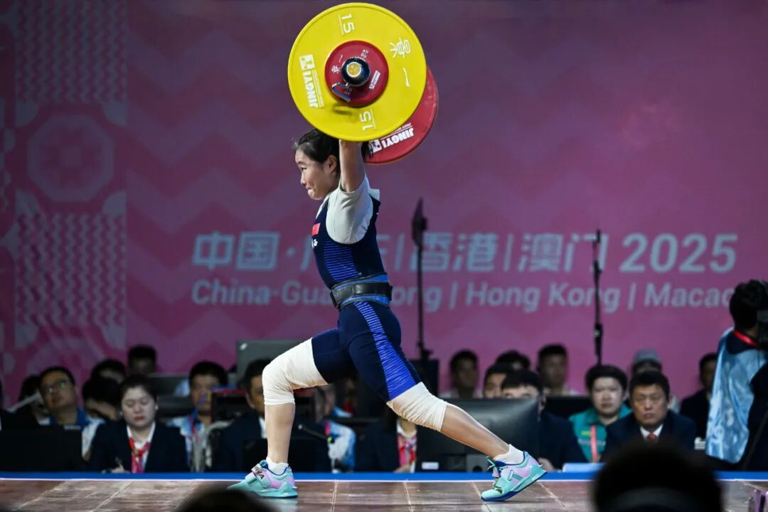 11月10日,第十五届全国运动会举重项目迎来首个比赛日。女子49公斤级决赛中,巴黎奥运会冠军侯志慧成功卫冕;女子45公斤级决赛中,广西“姐妹花”赵金兰和赵金红包揽金、银牌。